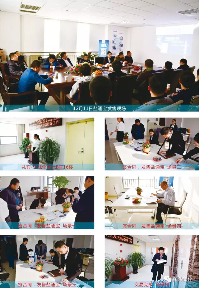 自2016年12月09日起,润鸿盐化“盐通宝”首批发售活动在寿光市东城全福元B座16楼隆重举行,截止12月11日15时16分,首批限量3万吨已全部发售完毕,自12月09日至12月11日,“盐通宝”价格从达标盐138元/吨、不达标盐128元/吨,到达标盐147元/吨、不达标盐135元/吨,呈持续上涨趋势。