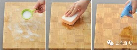 一是撒盐消毒,每次使用菜板后,都要用刀将板面的残渣刮净,每隔6~7天在板面上撒一层盐,这样既可杀菌,又可防止菜板干裂。