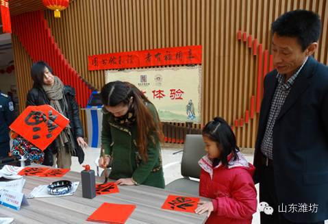 2016年春节将至,写福字、贴对联是中华民族的传统习俗。为发挥图书馆的群众文化服务主阵地作用,增加与广大读者的互动性,营造欢乐祥和的节日气氛,由潍坊市文化广电新闻出版局、北京师范大学中国易学文化研究院主办,潍坊市图书馆承办,在潍坊市图书馆一楼西厅,举办第二届“快乐阅读 潍图有福——送福进万家”国学体验活动,为广大市民和读者送上特别的新春礼物和美好祝福。