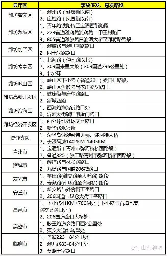 随着春节的临近,道路上也会比平日更加繁忙。而且从22日起,山东省内开始降雪。近日,潍坊交警支队统计了各县市区事故多发、易发路段,提醒市民途经这些路段时要注意遵守交通法规,文明礼让通行。