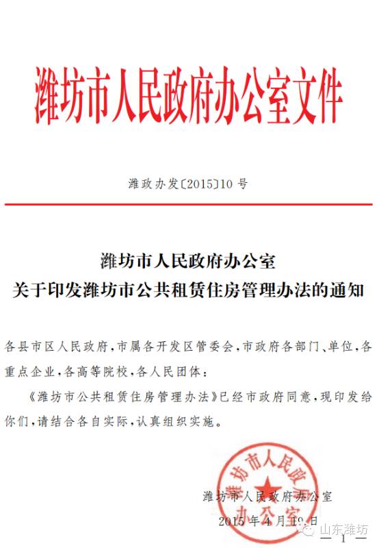 在公租房运行上,市政府出台了《潍坊市公共租赁住房管理办法》,实现廉租住房和公共租赁住房并轨运行,进一步降低准入门槛,扩大住房保障覆盖面,将市区低收入标准线从人均24128元提高到26327元,住房困难标准从人均15平方米提高到17.35平方米。