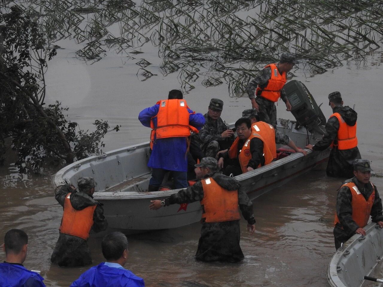 在沿河两岸及44个涵洞,部署特警1100名,24小时开展沿堤巡逻、守护涵洞,确保堤坝涵洞安全。