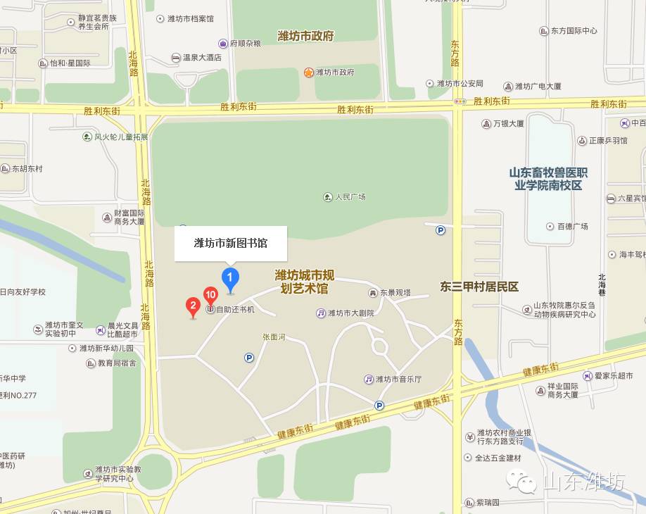 地址:潍坊市北海路4502号(市民文化艺术中心) 总服务台:0536-8261133 少儿部:0536-8263322 借书室:0536-8267722