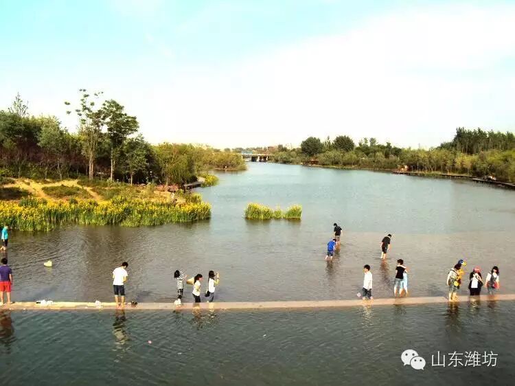 如果在潍坊遇见你,我们一定要去游白浪河,吃肉火烧,白浪河水滔滔,天上的月亮像火烧,奇好奇好……