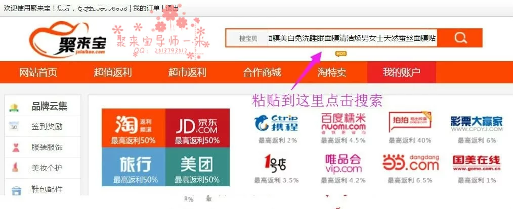 第三步:打开聚来宝官网并注册账号(打开这里注册http://is.gd/FfsiPV )复制商品的标题,在聚来宝的顶部搜索款粘贴点击搜索。出现的结果中找到该宝贝(一般在前3个宝贝)点击进入商品详情页面,选择好型号付款即可!