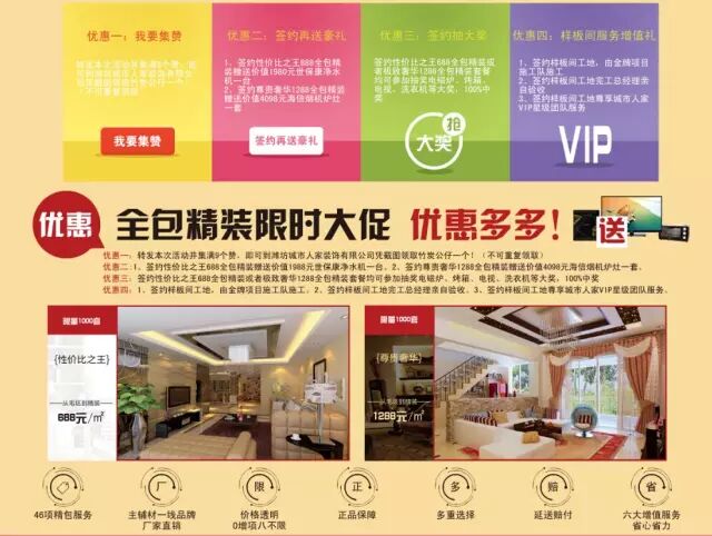 最高性价比,质量好更环保,橱柜不限米数,木门不限樘数,瓷砖不限面积,一口价无增项,费用直降30%,正真省心、省力、省钱!现在拨打电话0536-8220618预约到店可免费领取一份精美抽纸和家装手册一份,店面有2000平米主材展示区和欧式、现代简约实景样板间开放参观!有房的开始参考装修的业主朋友马上打电话吧~~