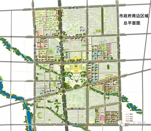 (二)设计范围:潍坊市政府周边地区,北起福寿街、南至樱前街,西至新华路,东至金马路。总设计范围约6.5平方公里。