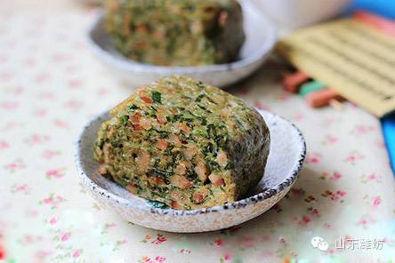 1、香椿清洗干净,下开水锅汆烫一下,捞出后冲洗干净沥干水分,剁成细末,将火腿切成大小相同的末状 2、鸡蛋打入碗中,加入1小勺盐、1小勺料酒、2小勺清水搅打均匀(要是觉得不够均匀可以过筛) 3、然后加入香椿末和火腿末搅拌均匀,锅子抹少许植物油烧热 4、将1勺的蛋液倒入,小火慢慢煎,煎至蛋液凝结,小心卷起来 5、将卷好的蛋皮推至锅子顶部,接着倒入1勺蛋液,等蛋液煎至凝固后自下而上卷起,依次做,直到用完所有的蛋液,做好的厚蛋烧切块,撒少许番茄酱即可食用 来源:潍坊日报诸城新闻