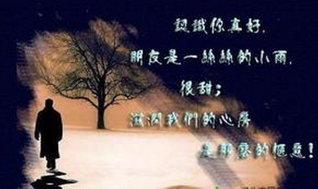 没有刻意的追求,也许心已在等候, 不迟不早,我们同时回首, 轻轻一声问候, 注定我们握住了缘分的手。 与其说与我相识是你今生最大的收获, 不如说茫茫网海得遇你是我前世的祈祷。 感谢上苍给我们的这段缘, 人生变得,如诗又如画。 朋友 ,请接受我真诚的微笑, 让我的微笑拂去你所有的疲倦和烦恼, 朋友,谢谢你伸出一双友爱之手, 扶持我在风雨中坚强的向前走。 一份真的关怀不说我也懂, 一份慰藉,愿与你销却万古愁, 一份相知的喜悦和感动,不由涌上心头。 朋友啊,真想对你说, 认识你真好。 握住缘分的手人生真的很美好, 愿我们彼此珍惜共同拥有, 愿我们这段情缘天长地久, 愿所有缘聚在这里的朋友, 幸福永远 ,快乐永久!