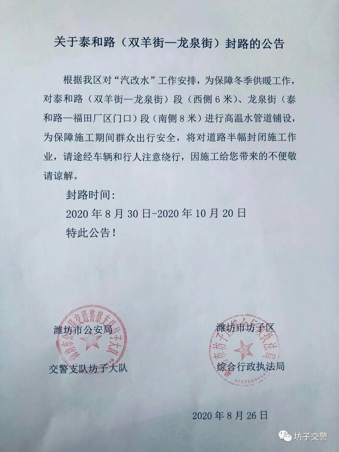 根据临朐县城市政工程安排,9月2日夜间至9月4日,民主路景观桥(民主大桥)路面维修施工。施工期间全封闭交通。过往车辆、行人请绕行。由此带来的不便,敬请谅解。
