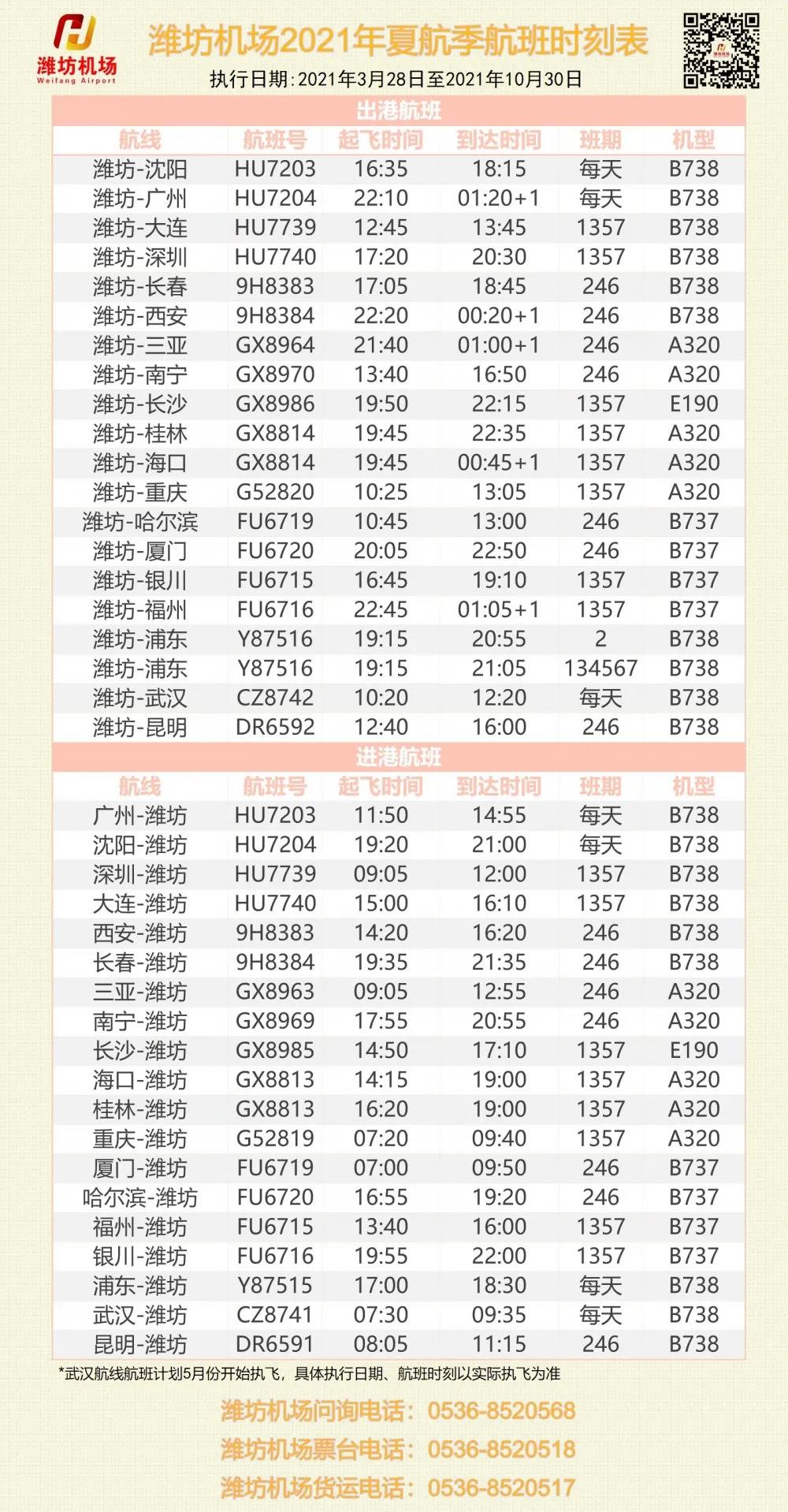 快收藏!潍坊机场夏秋季航班时刻表新鲜出炉 |